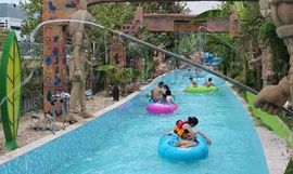 游客乘坐皮筏,從高11米的平臺口滑出發(fā),立即進入接近垂直的斜坡俯沖而下,在沖到坡底而驚魂未定時,在巨大慣性的作用下,又瘋狂地沖上向另一面斜坡當中,這個過程能給游客帶來失重和超重等獨特體驗。